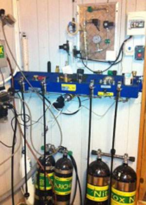 Fyllning av luft, nitrox och trimix. Boostring av syre